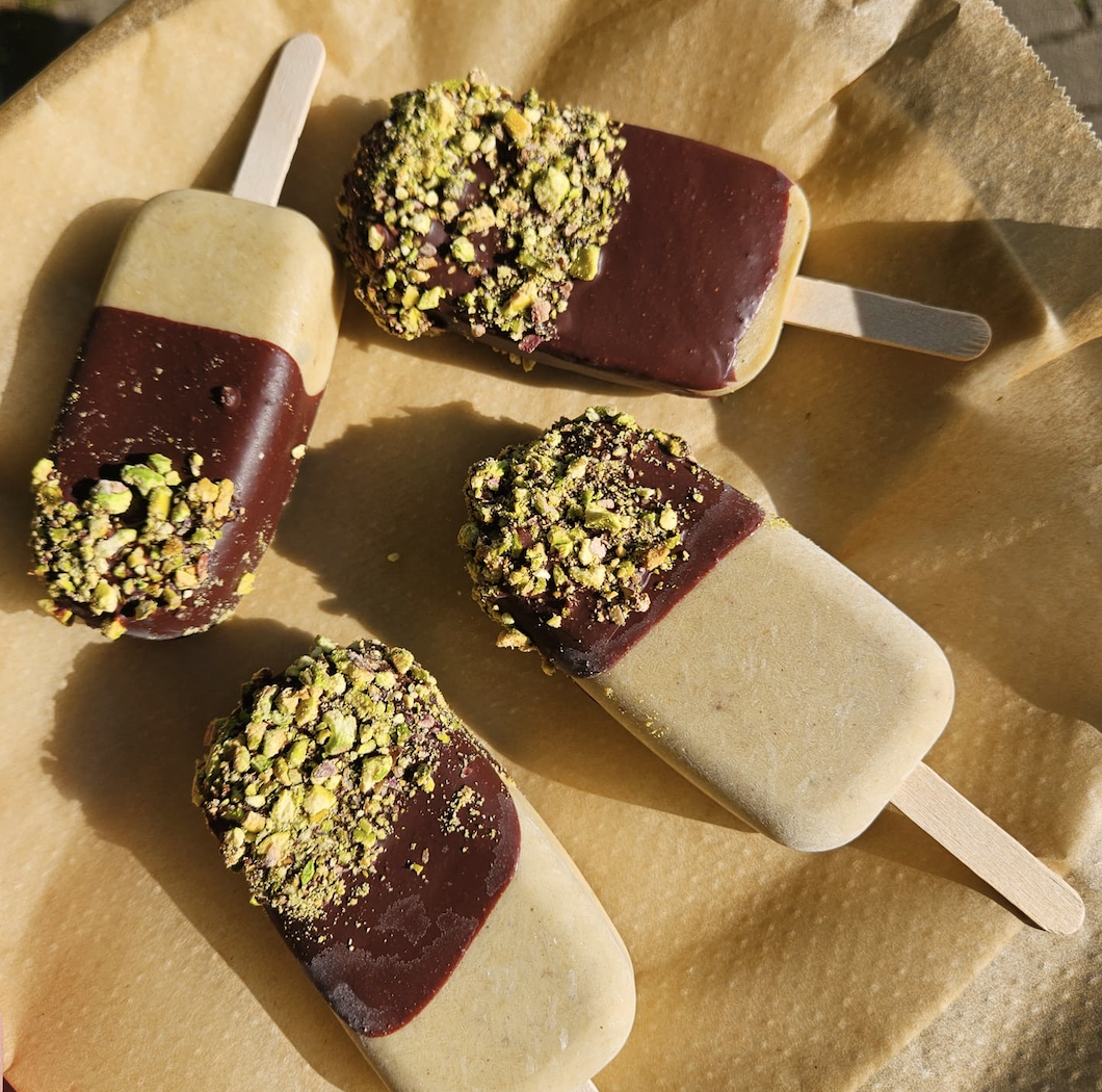 Roh-veganes Eis mit gefrorenen Bananen und Schokolade. Laktosefrei.